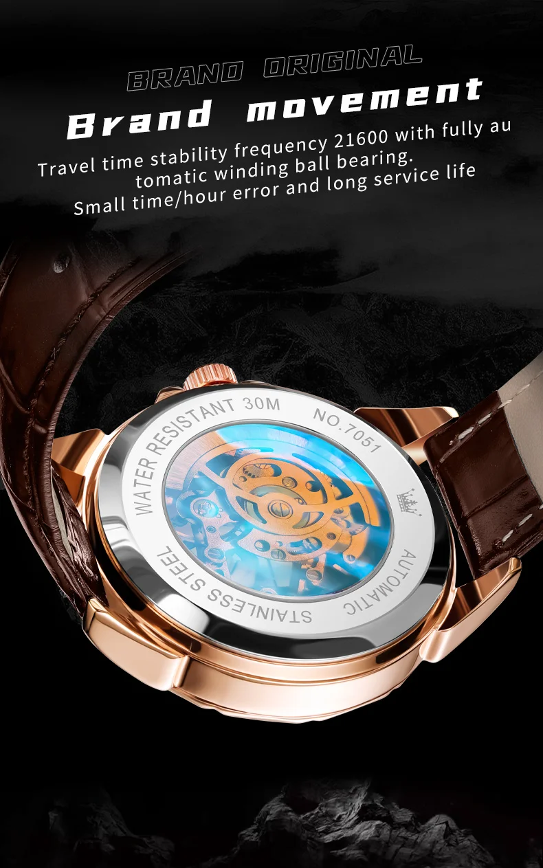 OLEVS 7051 Automatic Skeleton with Sapphire Crystal Watch